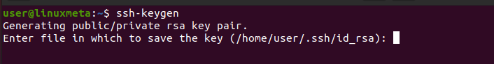 Again, if the SSH key pair already exists, you will be prompted whether to overwrite it. For this case, let’s use the default location and press the enter key to continue.
