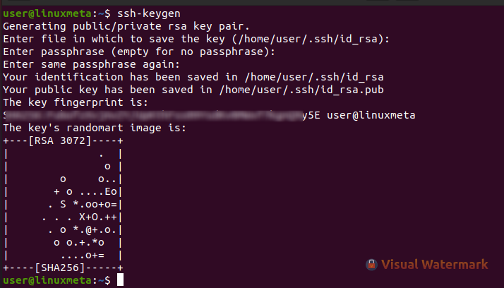 On your client machine, that’s where you generate the SSH key pairs. The key is a 3072-bit RSA key, and you can generate it using the command below.