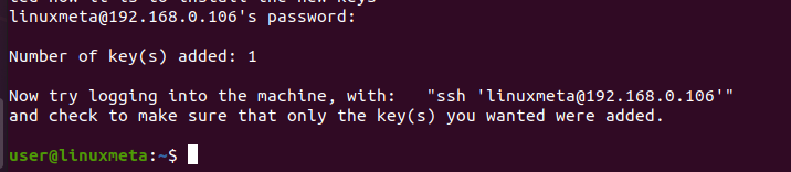 The next activity is to enter the password for your remote account. Once it matches out, you will get an output showing that the key has been added.