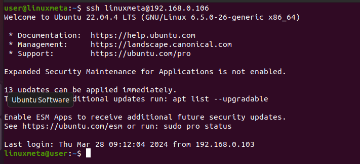 For the first method, you must get your remote host’s IP address and username. Once you have the details, run your command as follows.