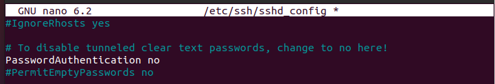 The last step is to disable password authentication by accessing the SSH configuration on our remote host.