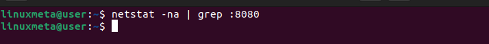 The list size depends on how many ports you have opened for your case. For a case of a long list, the ideal way to check if a target port is open is to filter the results using the grep command. Let’s use port 8080 for this example.