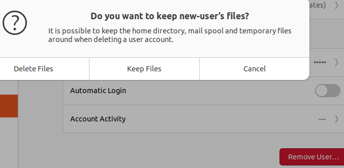 Below the target user, locate and click on the Remove User button. You will get prompted to confirm deleting their files.