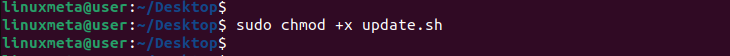 Sometimes, adding the execute command for everyone is not recommended, especially if the script has administrative tasks. Such a case requires you to specify what permission to add to make it executable and for which category. Let’s say we only want the user category to have the execute permission. For that, we would run the chmod command as follows: